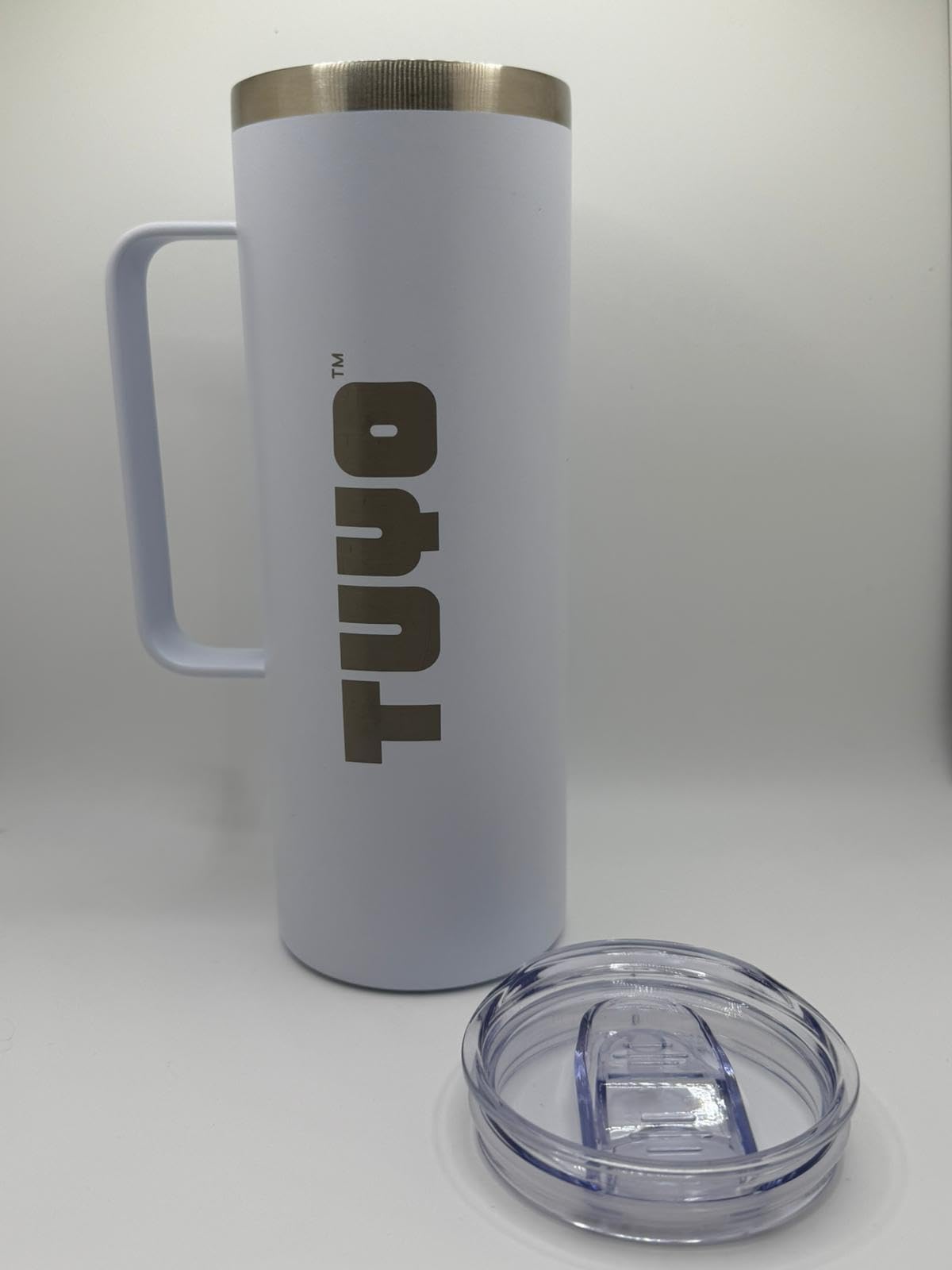 Stainless Steel Travel Mug & Reusable Tote Bag Bundle (White, 20 oz)