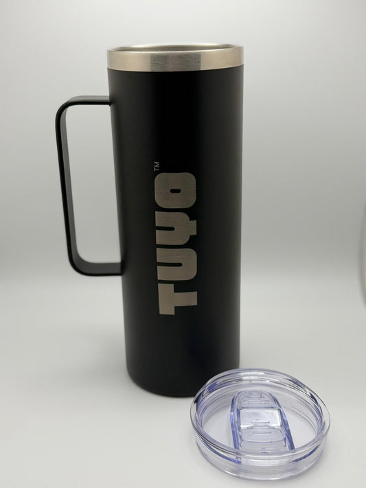 Stainless Steel Travel Mug & Reusable Tote Bag Bundle (Black, 20 oz)
